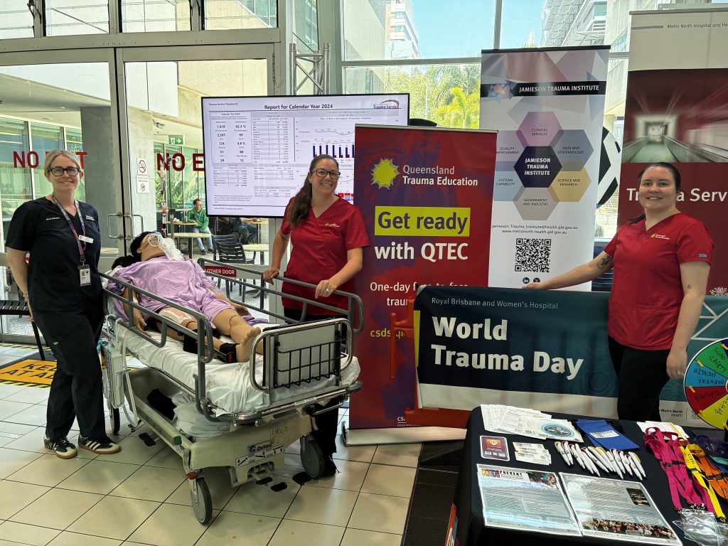 To mark the occasion, the Queensland Trauma Education (QTE) team joined forces with the RBWH Trauma Service, Prevent Alcohol and Risk Related Trauma In Youth (P.A.R.T.Y.), Jamieson Trauma Institute (JTI) and Teamwork and Collaborative Training (TACT) teams to engage with staff, patients and visitors at the Royal Brisbane and Women’s Hospital (RBWH) through interactive simulations and displays.